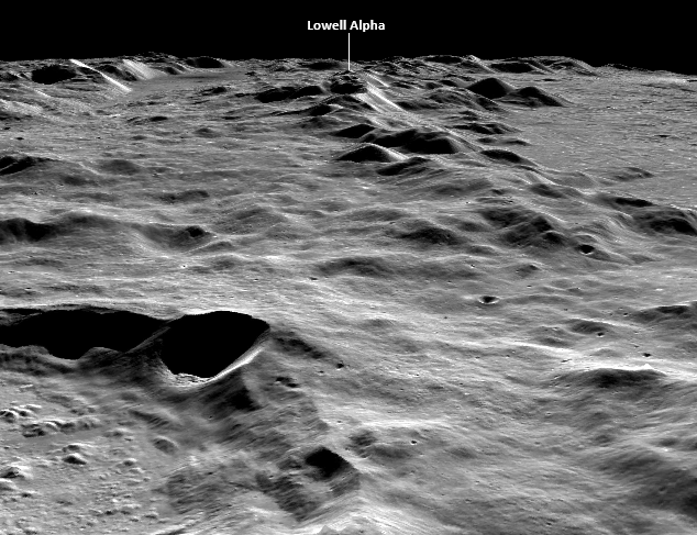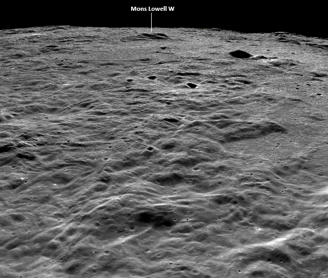 Finally, a third ‘unnamed fresh crater’ is shown on the image on the NASA blog, a considerable distance to the NW, south of the large Kovalevskaya Q. This is our Bobone Ø2 (25.55469, -130.51562) with an anti-prominence of 2700m. But has this also been given a new name?